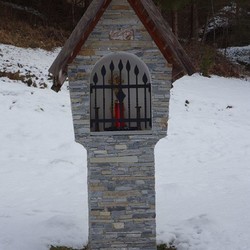 Dieses schöne Zeichen des Glaubens steht auf dem Grundstück einer Zuhube in der Schrems. Nach einer schweren Erkrankung gelobte der Besitzer Norbert Haidinger vulgo Salitrer, nach seiner Genesung im Jahre 2000 dort einen Bildstock zu errichten.