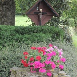 Auf dem Weg nach Pfannberg, an der Abzweigung zum Gut Pichlhof, steht ein rötliches Wegkreuz aus Holz mit einem Kruzifix, der künstlerischen Darstellung des gekreuzigten Christus. Das Kruzifix (lat. „ans Kreuz geheftet“) ist Sinnbild für das Opfer Christi, das dieser zur Erlösung der Menschheit gebracht hat.